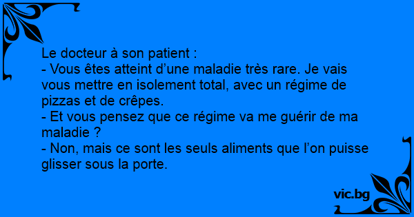 - Vous êtes atteint d’une maladie très rare. Je vais vous mettre en isolement total, avec un régime de pizzas et de crêpes.