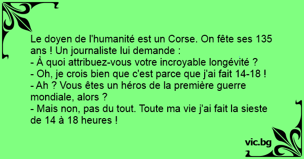 Le doyen de l'humanité est un Corse. On fête ses 135 ans ! Un journaliste lui demande :