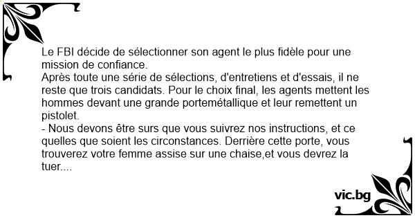 Trois gars veulent rentrer au FBI, leur patron leurs dit :