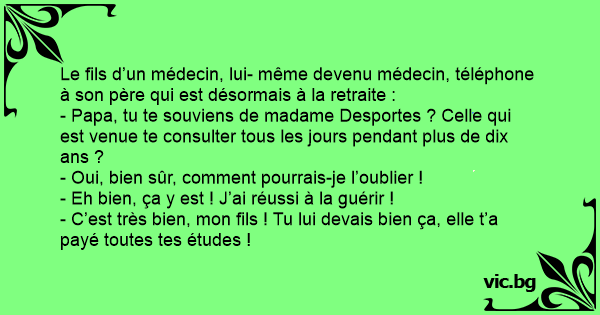 Le fils d’un médecin, lui- même devenu médecin, téléphone à son père qui est désormais à la retraite :