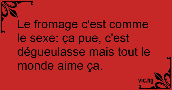 Le fromage c'est comme le sexe: ça pue, c'est dégueulasse mais tout le monde aime ça.