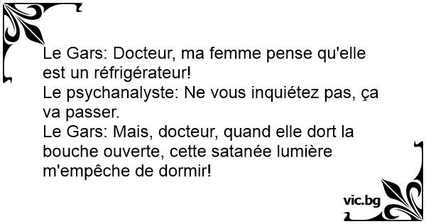 Le Gars: Docteur, ma femme pense qu'elle est un réfrigérateur!
