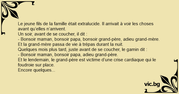 Le jeune fils de la famille était extralucide. Il arrivait à voir les choses avant qu’elles n’arrivent.
