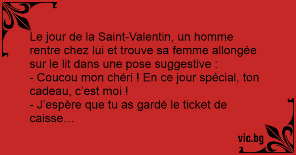 Le jour de la Sаinт-Valentin, un homme rentre chez lui et trouve sa femme allongée sur le lit dans une pose suggestive :