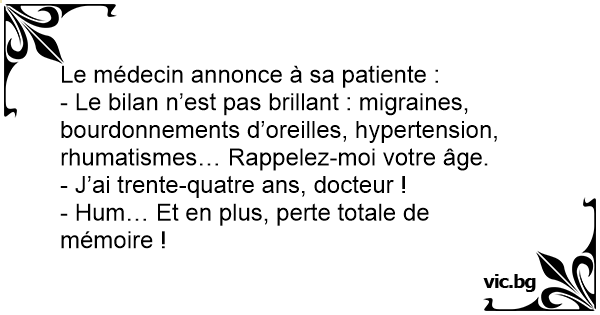 - Le bilan n’est pas brillant : migraines, bourdonnements d’oreilles, hypertension, rhumatismes… Rappelez-moi votre âge.