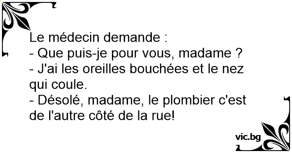- Désolé, madame, le plombier c'est de l'autre côté de la rue!