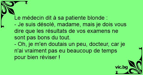 - Oh, je m'en doutais un peu, docteur, car je n'ai vraiment pas eu beaucoup de temps pour bien réviser !