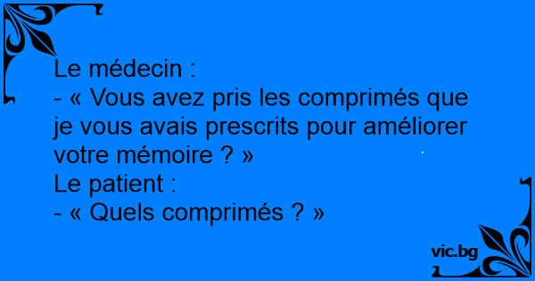 - « Vous avez pris les comprimés que je vous avais prescrits pour améliorer votre mémoire ? »