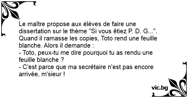 Le maître propose aux élèves de faire une dissertation sur le thème "Si vous êtiez P. D. G...".