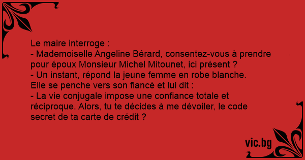 - La vie conjugale impose une confiance totale et réciproque. Alors, tu te décides à me dévoiler, le code secret de ta carte de crédit ?