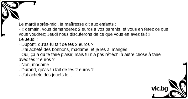 - Durand, qu’as-tu fait de tes 2 euros ?