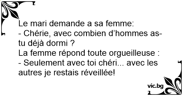 - Chérie, avec combien d’hommes as-tu déjà dormi ?