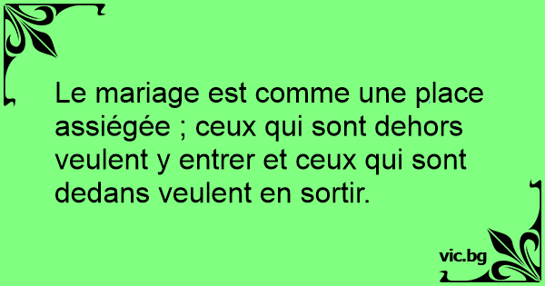 Le mariage est comme une place assiégée ; ceux qui sont dehors veulent y entrer et ceux qui sont dedans veulent en sortir.