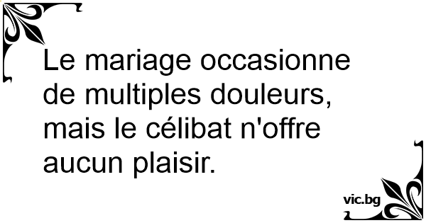 Le mariage occasionne de multiples douleurs, mais le célibat n'offre aucun plaisir.