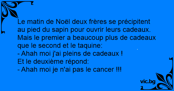 Le matin de Noël deux frères se précipitent au pied du sapin pour ouvrir leurs cadeaux. Mais le premier a beaucoup plus de cadeaux que le second et le taquine: