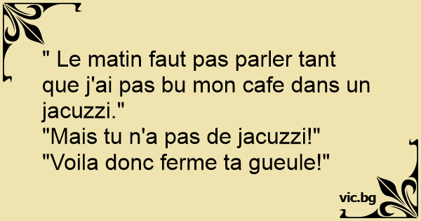 " Le matin faut pas parler tant que j'ai pas bu mon cafe dans un jacuzzi."