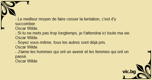 - Le meilleur moyen de faire cesser la tentation, c'est d'y succomber.