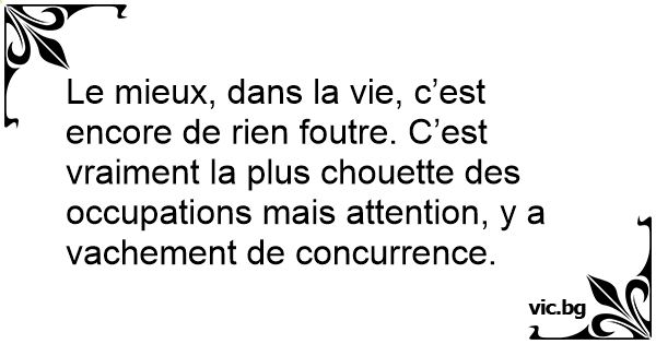 Le mieux, dans la vie, c’est encore de rien foutre. C’est vraiment la plus chouette des occupations mais attention, y a vachement de concurrence.