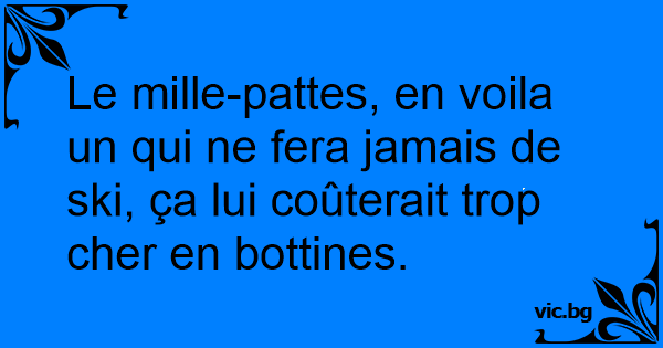 Le mille-pattes, en voila un qui ne fera jamais de ski, ça lui coûterait trop cher en bottines.