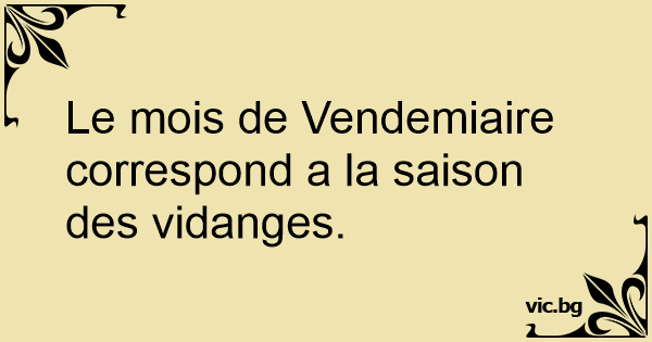 Le mois de Vendemiaire correspond a la saison des vidanges.