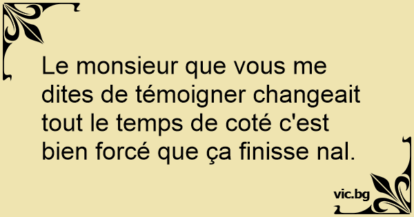 Le monsieur que vous me dites de témoigner changeait tout le temps de coté c'est bien forcé que ça finisse nal.