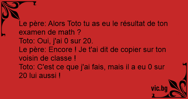 Le père: Alors Toto tu as eu le résultat de ton examen de math ?