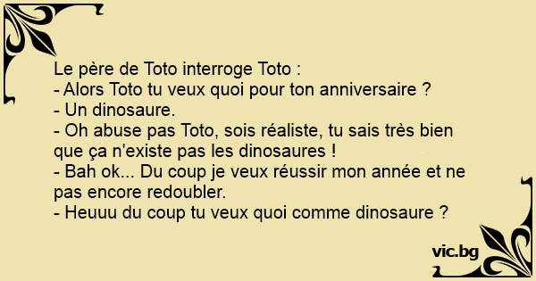 - Alors Toto tu veux quoi pour ton anniversaire ?