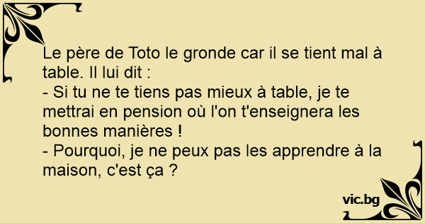 Le père de Toto le gronde car il se tient mal à table. Il lui dit :