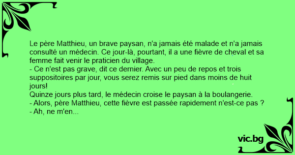 Quinze jours plus таrd, le médecin croise le paysan à la boulangerie.