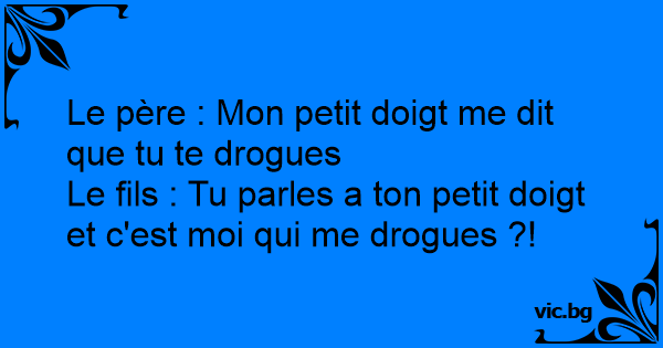 Le fils : Tu parles a ton petit doigt et c'est moi qui me drogues ?!