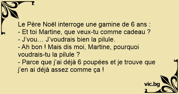 - Ah bon ! Mais dis moi, Martine, pourquoi voudrais-tu la pilule ?