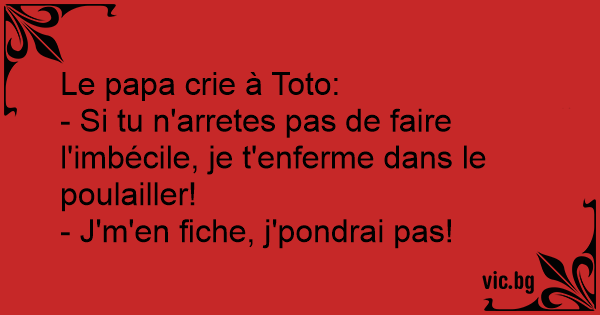 - Si tu n'arretes pas de faire l'imbécile, je t'enferme dans le poulailler!