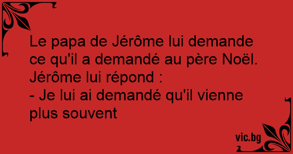 Le papa de Jérôme lui demande ce qu'il a demandé au père Noël. Jérôme lui répond :