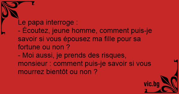 - Écoutez, jeune homme, comment puis-je savoir si vous épousez ma fille pour sa fortune ou non ?