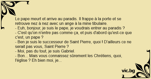 - Euh, bonjour, je suis le pape, je voudrais entrer au paradis ?