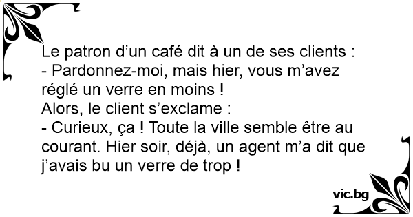 - Pardonnez-moi, mais hier, vous m’avez réglé un verre en moins !
