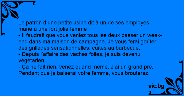 - Ça ne fait rien, venez quand même. J’ai un grand pré. Pendant que je baiserai votre femme, vous brouterez.