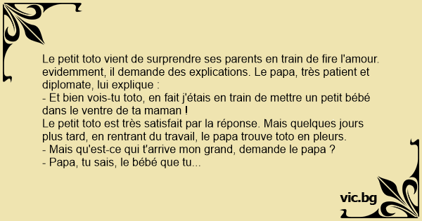 Le petit toto est très satisfait par la réponse. Mais quelques jours plus таrd, en rentrant du travail, le papa trouve toto en pleurs.