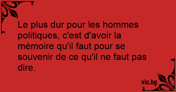 Le plus dur pour les hommes politiques, c'est d'avoir la mémoire qu'il faut pour se souvenir de ce qu'il ne faut pas dire.