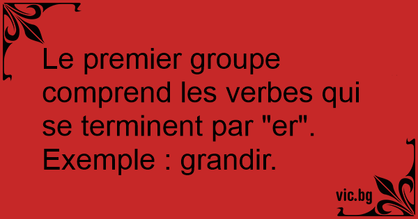 Le premier groupe comprend les verbes qui se terminent par "er". Exemple : grandir.