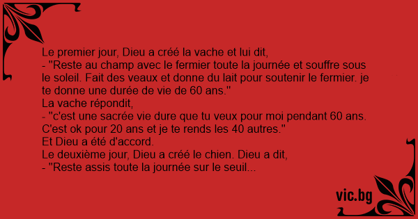 Le premier jour, Dieu a créé la vache et lui dit,