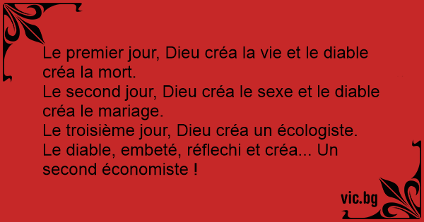 Le troisième jour, Dieu créa un écologiste. Le diавlе, embeté, réflechi et créa... Un second économiste !