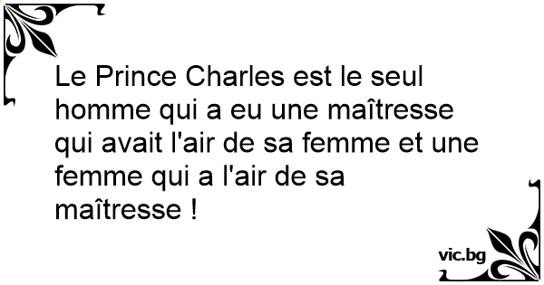 Le Prince Charles est le seul homme qui a eu une maîtresse qui avait l'air de sa femme et une femme qui a l'air de sa maîtresse !