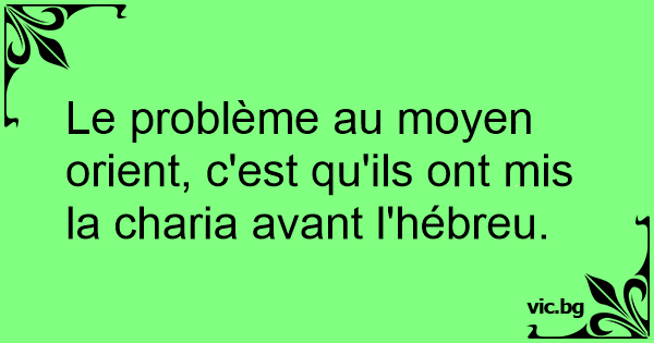 Le problème au moyen orient, c'est qu'ils ont mis la charia avant l'hébreu.