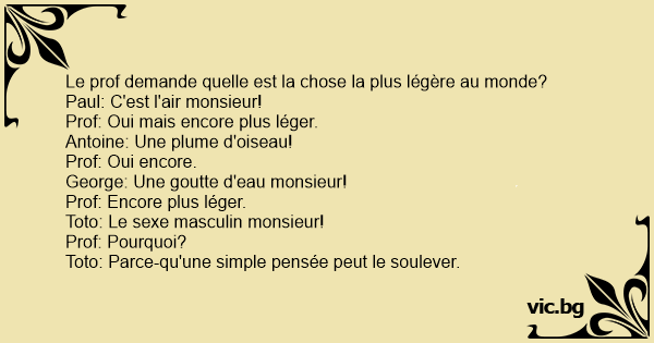 Le prof demande quelle est la chose la plus légère au monde?