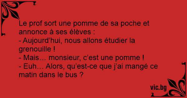 Le prof sort une pomme de sa poche et annonce à ses élèves :