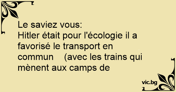 Hitler était pour l'écologie il a favorisé le transport en commun (avec les trains qui mènent aux camps de concentration)