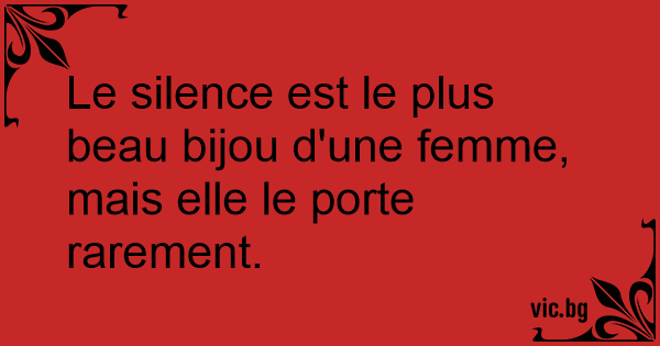 Le silence est le plus beau bijou d'une femme, mais elle le porte rarement.