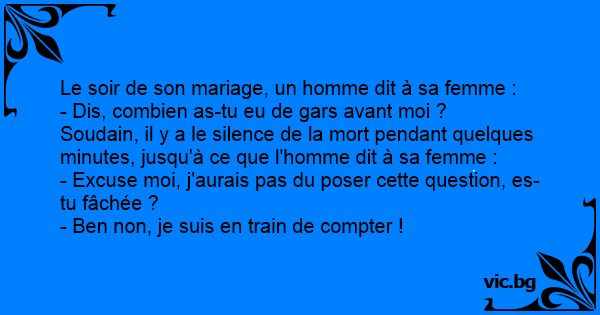 Le soir de son mariage, un homme dit à sa femme :