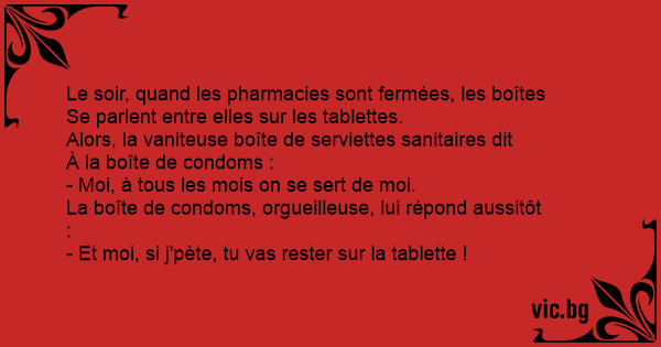 La boîte de condoms, orgueilleuse, lui répond aussitôt